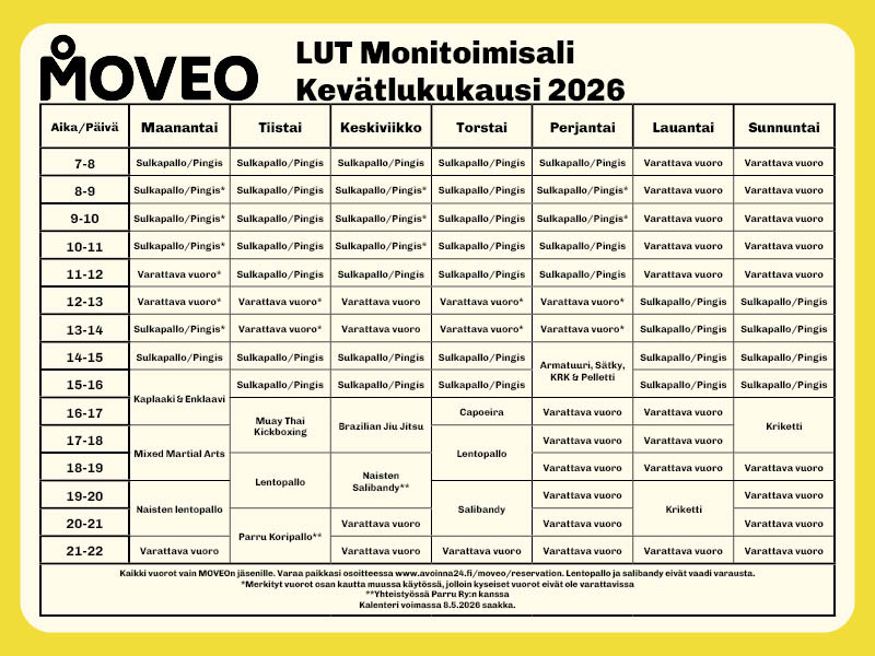 Huom! MOVEO tarjoaa kaikille opiskelijoille maksutta myös etäryhmäliikuntatunteja, katso lisätiedot MOVEOn etusivulta.